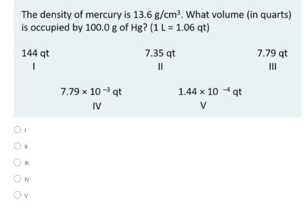 Solved The Density Of Mercury Is 13 6 G Cm3 What Volume In Chegg Com